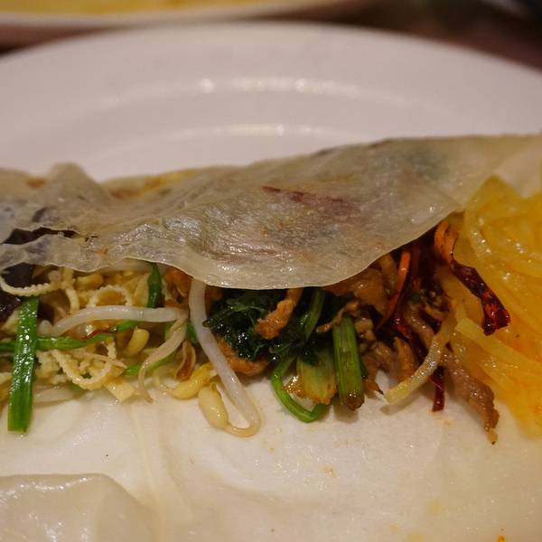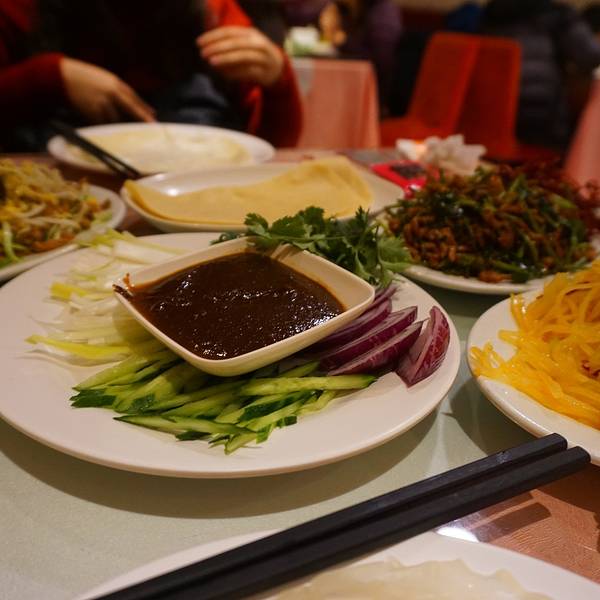 - 非常有名的春饼店。所以非常理智得单点了。值得一说的是一定不要看是两人就点两人套餐,因为真的吃不完