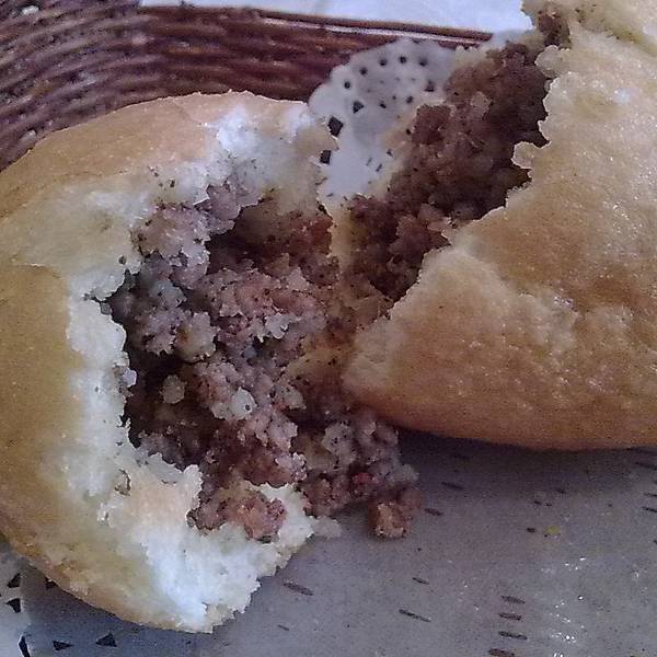 油煎包里面是牛肉碎儿的馅料混合米饭,外皮是面包滚油过的,本挺好吃,但站着红菜汤滋味更好,