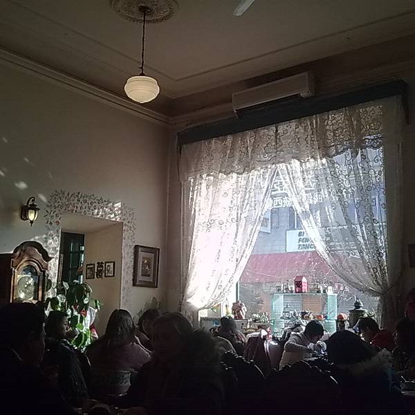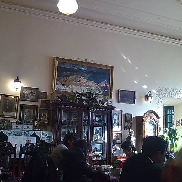 有点凉了,味道就觉得普通了,没莉莉娅的好吃。茶叶罐子都这么有历史,建筑就是古董西餐馆。杯子都这么美