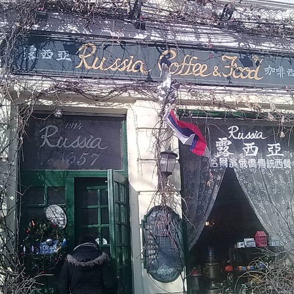 座落在快走到松花江的中央大街上 墨绿色的大门 几乎被掩盖在墙上的藤蔓里 真是非常浪漫的小店 店内的装修很“俄式” 充满了怀旧的氛围 牆上掛滿了哈爾濱的歷史與文化 銀屏上反覆播放懸崖的片段 該劇就是在此取...