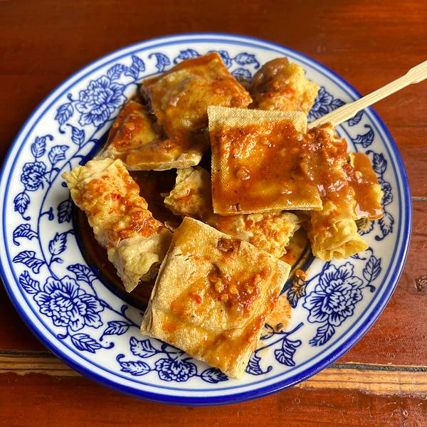 推荐指数:⭐️⭐️。【茅老太臭豆腐】 价格:10元一份,一共八块