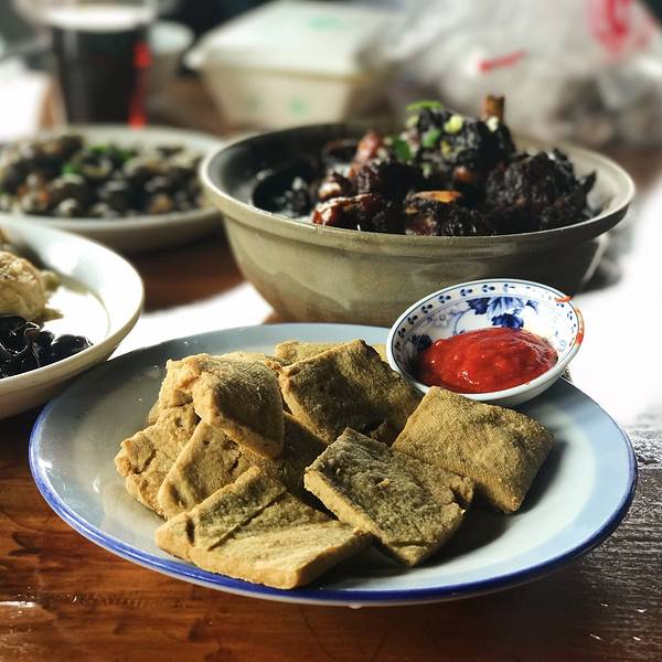 午餐选择了东栅的逢源酒楼 逢源双桥是东栅的标志,而逢源酒店正是在其一旁,加之酒楼对面高竿船。 如时间算得刚好,就可以看个表演啦。 这里的地理位置很不错。落座的时候,二楼只有我们一桌 打开窗户,包场的感觉真是爽。乌镇招牌——红烧羊肉(80元+) 很入味,很酥,香香哒。油豆腐塞菜肉馅(10多块吧) 味道比较淡,但是也是香香的。重口味臭豆腐 薄薄的臭豆腐干,所以比厚的要干(这不是废话吗!!!),所以嚼劲儿十足,臭味也十足~~ 然后,还点了清蒸白水鱼(只要48块好像),然后 我忘记拍皂片了。。。。。 实际这条鱼被我们吃光光啦~所以,它很新鲜,很好吃。 总共点了6个菜,1瓶大可乐,1大大大大大盆饭。4大人2小宝,总共219元,挺划算吧!