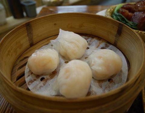 门口都是木质的装饰,有些叉烧、烧鸭挂在玻璃窗内,特别诱人,让有人食欲