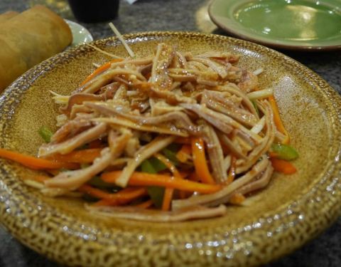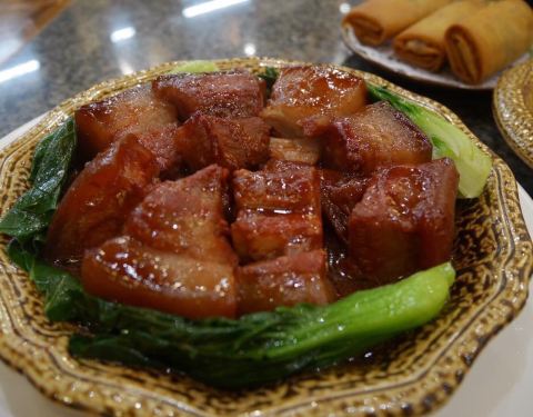 从淡茶饭出来,又看到了这家餐厅~ 环境是特色,室内有不少灯笼高挂,各种餐点写在灯笼上,感觉有点茶馆的味道~ 门口都是木质的装饰,有些叉烧、烧鸭挂在玻璃窗内,特别诱人,让有人食欲~ 实在是吃饱了,所以只进去点了些特色叉烧等~ 这样的餐厅环境,配上粤菜,毫无违和感,食客们也都吃的非常欢乐~ 餐厅生意真心不错的,即使不是饭点,也基本全满~
