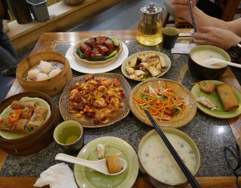 乌镇西栅景区里为数不多的主打粤菜的餐馆,店内环境宽敞雅致,屋顶上高挂一排排灯笼,有点像"南京大排档"的格调。菜单上的小菜点心饮料品种较丰富,但价钱都不便宜,随便吃吃,其实口味和避风塘差不多,但性价比不如吧。