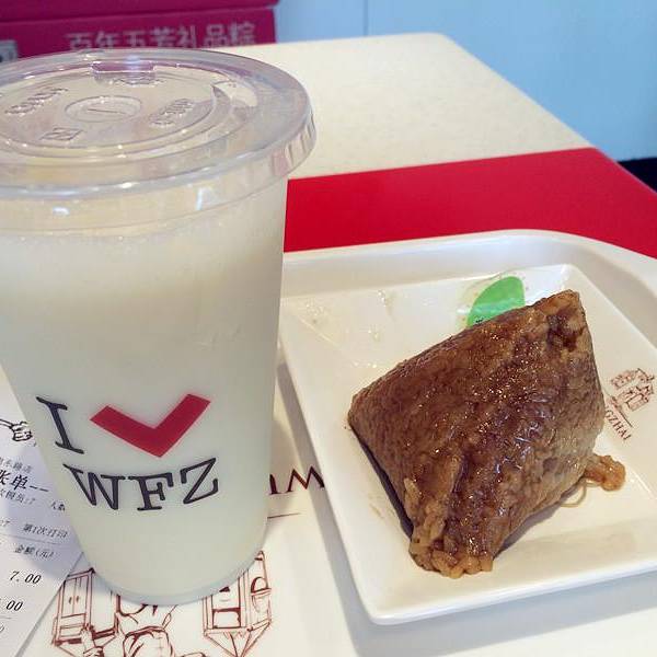 去景区检票点的途中,遇到了五芳斋,打算在这里解决早饭。五芳斋,是浙江有名的餐饮品牌了。但好像只在南方发展,一直没有开过来东北这边,所以东北这面知道这个品牌的不算多。我知道这个品牌,还是得益于我的大学室友,每年端午节她都喊着要吃五芳斋的粽子,我也就一直对五芳斋留有个印象。点了一份蛋黄鲜肉粽,还要了一杯冰豆浆,一共12元,味道还不错。