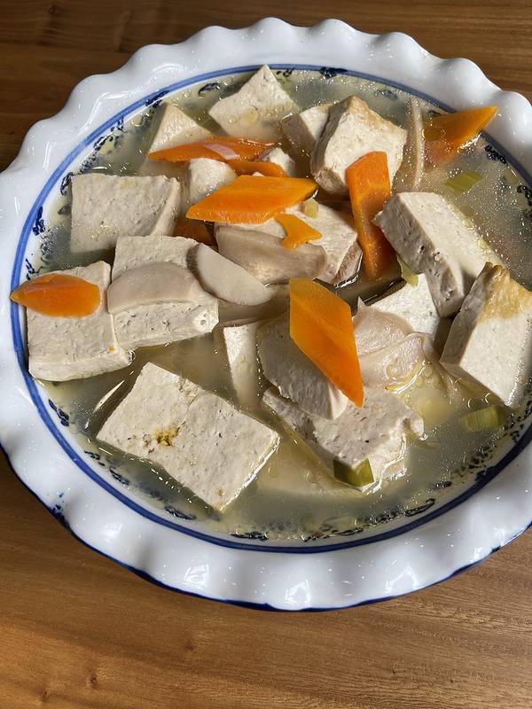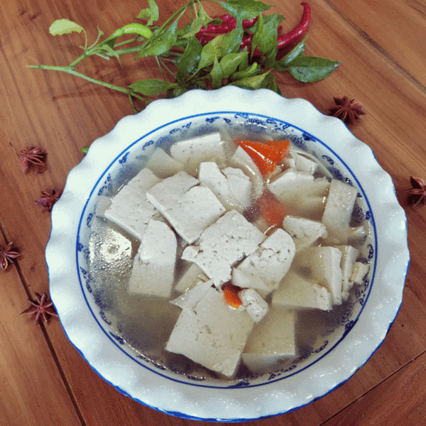 蘑菇炖豆腐:豆腐有传统老豆腐的风味,是当地很出名的豆腐作坊制作,豆味很足很浓郁,真材实料,很美味。