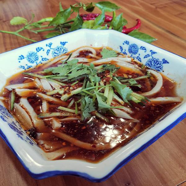 致庸灌肠:微辣,冰凉爽滑,有点像厚切面片的感觉,拌的酱料酸咸适中,比较开胃。