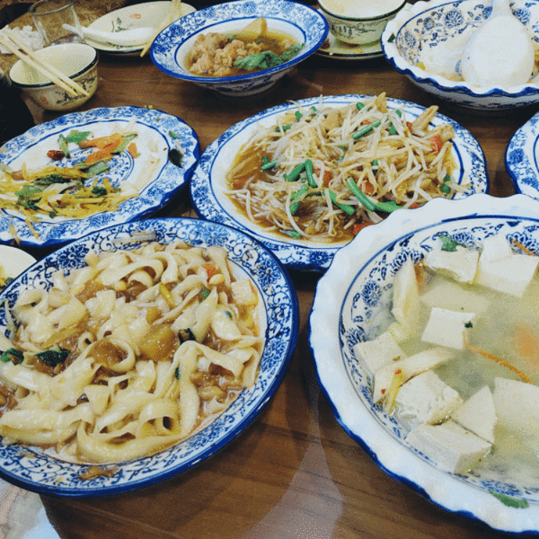 在乔家大院的午餐选择了,乔家老号。这家店铺的名字听起来就和乔家大院有着关系,其实乔家老号最早的经营者,就是当时乔家大院的后人,想着流传乔家大院当时的美食。乔家人招待客人的美食,便是八碗八碟。而我们这次被吸引,是因为这一碗祖传的刀削面,他家的面管饱吃,由于我们人多,点了八碗八碟,中的一些菜:像喇嘛肉、致庸灌肠、祁县蛋卷,都是强烈推荐的菜品。很好吃!