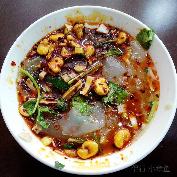 店里另外一小吃冰镇滴溜5元一杯,醋味浓郁,挺开胃。招牌凉粉倒很一般,里面加的蚕豆和豆腐条很好吃