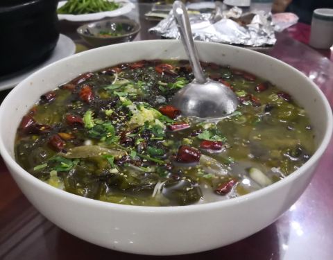 - 人气爆满,出门迟肯定要等位的,食物有当地特色,酒是自己店酿的,花香味期,足,酸辣鱼不太能吃辣的...
