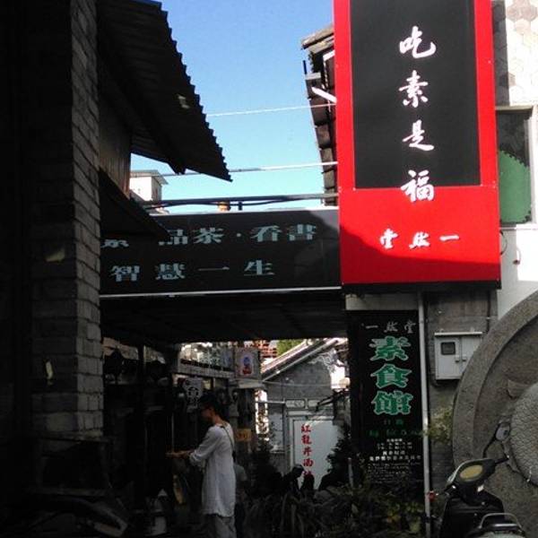 ) 到饭点整条街都可以听到佛乐。大理最后一餐,出于好奇,我去了博爱路的【一然堂素食馆】