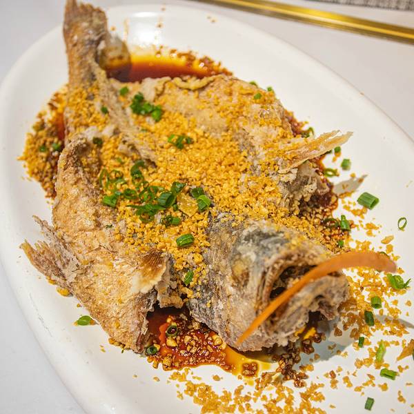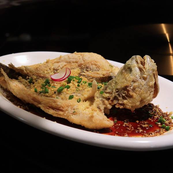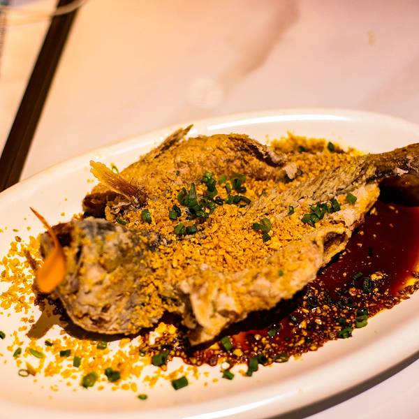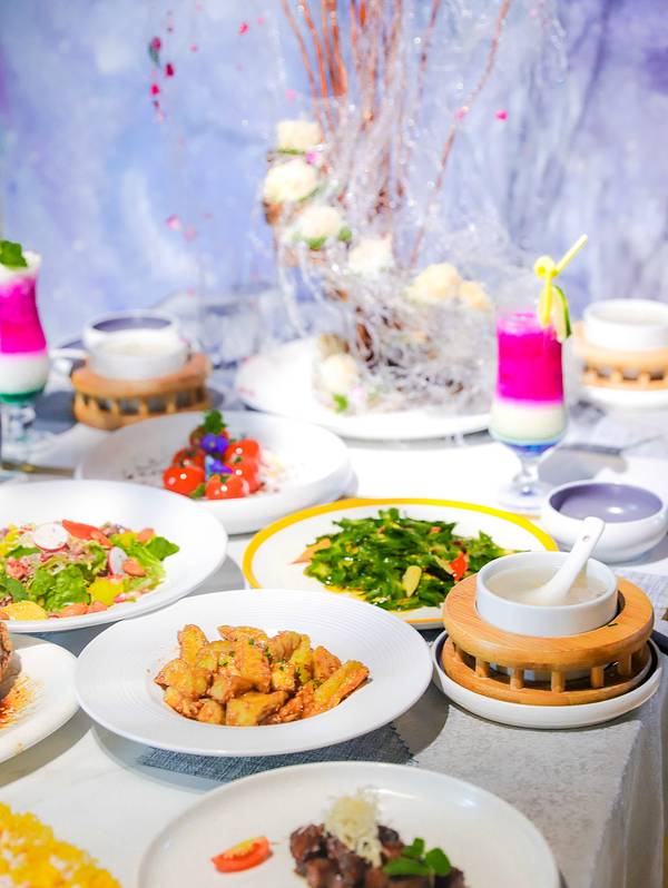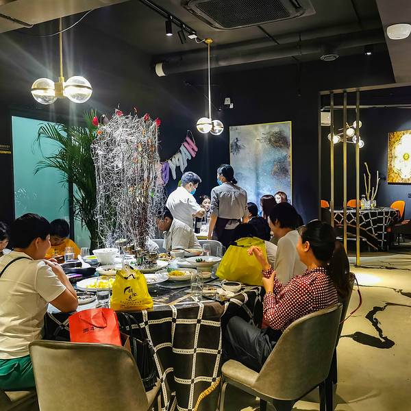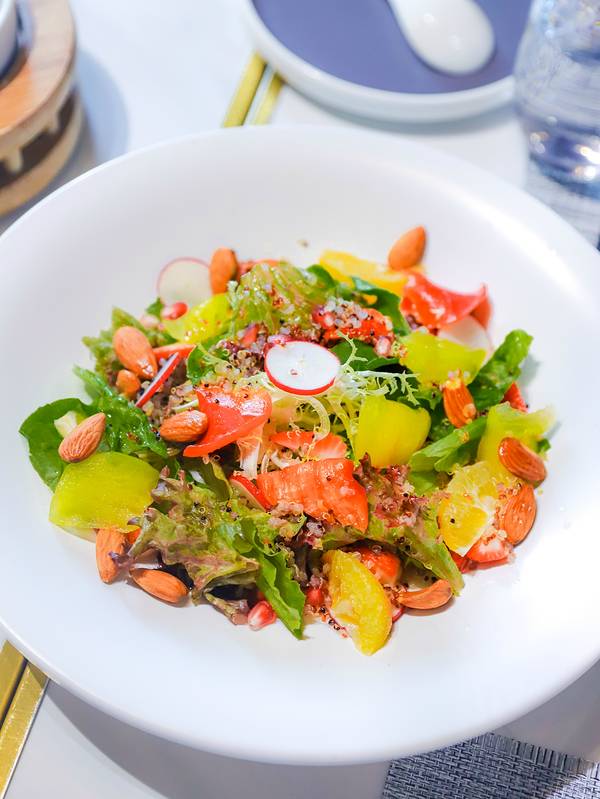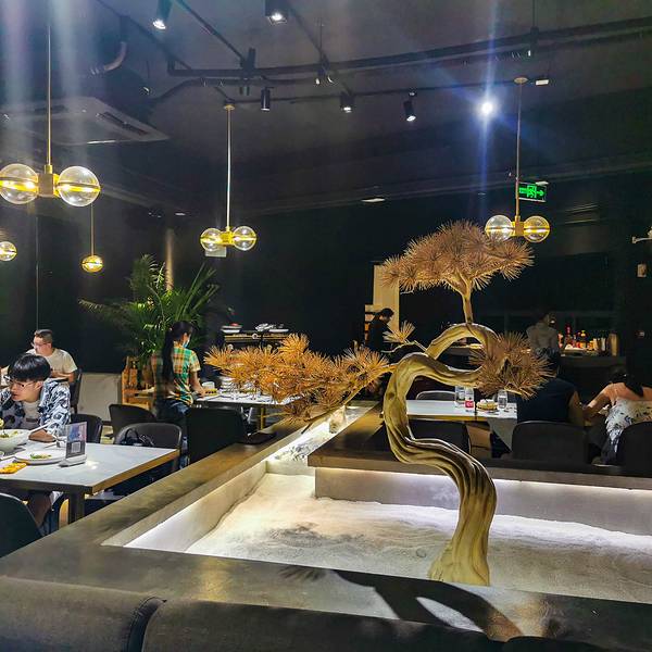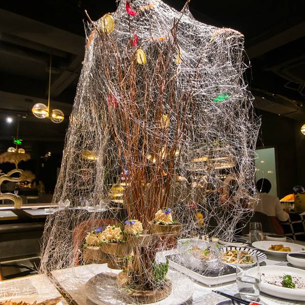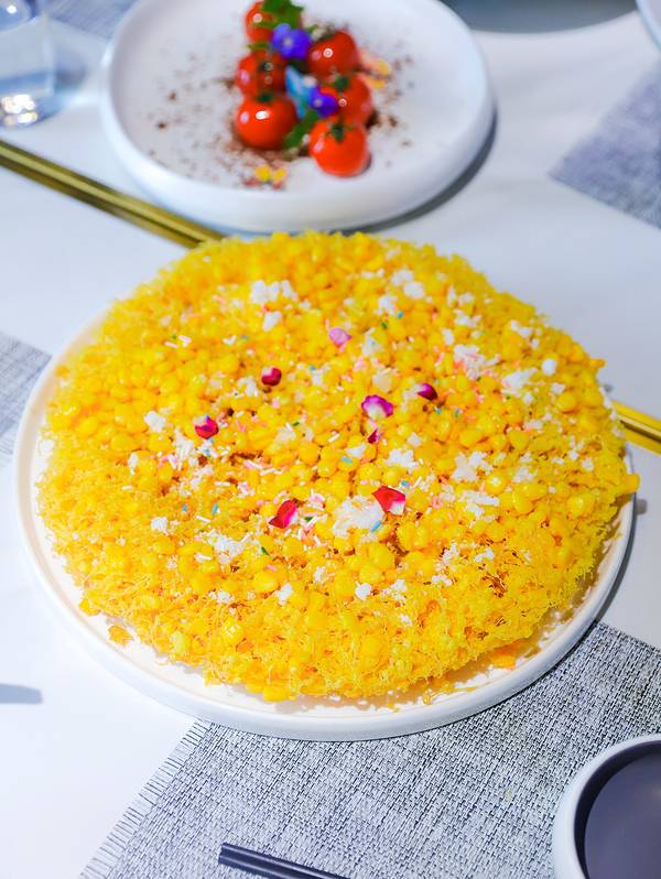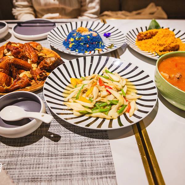 推荐菜品:番茄脆果沙拉:颜值超高的一道菜,小番茄底部开口,在中间放了坚果和沙拉酱,酸甜口感,极力推荐。牛油果芥末虾球:创意很棒的一道菜,树枝间挂满了糖丝,芥末虾球被包裹于树于糖丝间,虾肉吃起来鲜嫩Q弹,搭配着微辣的芥末,味道很棒。糖豉汁香蒜黄鱼:裹上淀粉后再油锅中烹制而成,口感外酥里嫩,搭配糖豉汁更加香甜美味。红酒泡沫牛肉粒:牛肉品质很棒,入口鲜嫩多汁,又有嚼劲,香甜的红酒味中,夹着一丝黑胡椒味。脆珊瑚玉米粒:颜值很高,吃起来脆脆的,味道偏甜,喜欢甜食的可考虑,一定要趁热吃。冲浪雪花和牛汤:直接用烧开的牛肉汤浇上,即可食用,汤味清淡爽口,牛肉鲜嫩。还有家积茄子、藜麦减脂沙拉、XO酱爆四角豆也都值得品尝,它家饮品颜值和口感也都很可。
