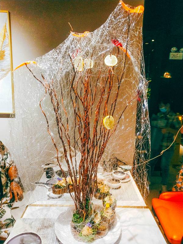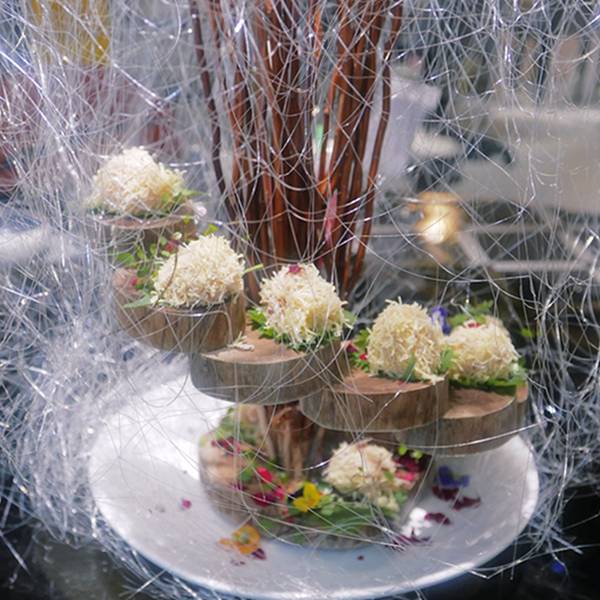 稍微秀主打的是创意海南菜,那么到底又有什么不同呢?首推的,当属这道牛油果虾球了,这也是我吃过的最大、最有创意、最与众不同的牛油果虾球,就是这份做成了一棵树形状的大菜啦。端上来的时候我们当时就震惊了,居然这么大一份,把银色的糖丝拉成垂柳的造型,用树干支撑起来,底座,也就是根部是一层一层放置虾球的地方。