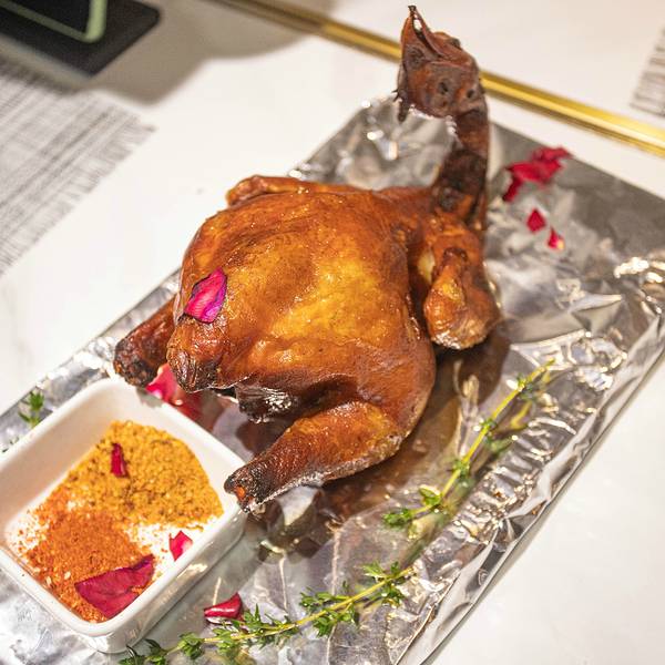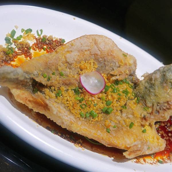 一家在当地小有名气的本地菜,以超高颜值摆盘艺术和精致美味菜品而广受好评。 据说当年是做外卖起家,后来生意逐渐火爆,才发展成为现在看到的餐厅。 这次如果不是有去过的朋友带领,差点就错过了他们家本就不明显的小门脸。 环境:中式风格的餐厅,禅意十足,色彩搭配舒适。菜品推荐 冰草沙拉:色泽翠绿,上面分布着晶莹剔透的小水珠,淡淡的咸味混着清香,冰爽鲜嫩。山楂鹅肝:摆盘充满高级感,上桌的时候雾气缭绕,如同飘着仙气,酸甜的山楂外皮包裹着入口即溶的鹅肝,回味悠长。牛油果芥末虾球:造型唯美浪漫,就像披着头纱款款而来,里面的虾肉Q弹美味,加了牛油果🥑和芥末,好吃不腻。炸牛奶:外皮很酥,里面软软的,要趁热吃口感会更赞。糖豉汁香蒜黄鱼:鲜美酥脆,口齿留香。脆珊瑚玉米粒:份量超大,香甜可口。脆皮文昌鸡:外皮烤至焦黄,香味四溢,鸡肉格外香嫩。番茄土豆排骨汤:火候掌握精准,排骨煮的很化,喝起来鲜香浓郁。地址:川北二横巷八角楼四层(中恒建材城对面巷子内) 营业时间:11:14,17:00-22:00