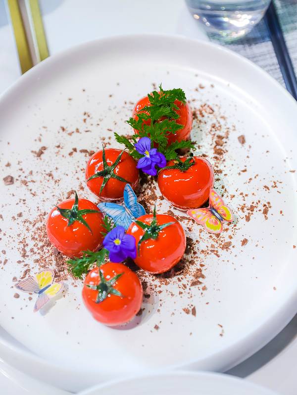 - 推荐菜品:番茄脆果沙拉:颜值超高的一道菜,小番茄底部开口,在中间放了坚果和沙拉酱,酸甜口感,极力推荐