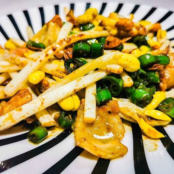 冰草沙拉:色泽翠绿,上面分布着晶莹剔透的小水珠,淡淡的咸味混着清香,冰爽鲜嫩。山楂鹅肝:摆盘充满高级感,上桌的时候雾气缭绕,如同飘着仙气,酸甜的山楂外皮包裹着入口即溶的鹅肝,回味悠长。牛油果芥末虾球:造型唯美浪漫,就像披着头纱款款而来,里面的虾肉Q弹美味,加了牛油果🥑和芥末,好吃不腻。炸牛奶:外皮很酥,里面软软的,要趁热吃口感会更赞。糖豉汁香蒜黄鱼:鲜美酥脆,口齿留香。脆珊瑚玉米粒:份量超大,香甜可口。脆皮文昌鸡:外皮烤至焦黄,香味四溢,鸡肉格外香嫩。番茄土豆排骨汤:火候掌握精准,排骨煮的很化,喝起来鲜香浓郁。地址:川北二横巷八角楼四层(中恒建材城对面巷子内)