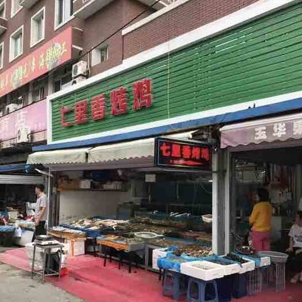 店名:七里香烤鸡 地址:玉华市场内 七里香是大连大连有名的烤鸡老店,招牌烤鸡“远近闻名”,味道没的说,做法很“特别”,整只鸡里面塞满了葱、姜、香菇和各种调料,主要是各种香料,再放进炉子里 烤,烤出来的鸡肉特别嫩,香味十足,特别适合解馋,比那些超市或者熟食店卖的烤鸡好很多!鸡腿也不错,平时生意也是一直很火,门口总是排着长队。这个味道绝对是外地吃不到的。 ✨玉华市场的这家七里香没有民勇地下的七里香🍗那么火爆,动不动就要排起长队,档口也小很多,店里小姐姐的态度明显好过民勇店,看好哪个告诉她很热情的帮你挑出来^_^ 烤鸡的香气肆意弥漫。烤鸡和鸡腿都是21元一斤。口味分为原味和孜然的,个人喜欢原味的,选鸡腿要皮多的,烤的火候大的,鸡腿🍗边缘的皮肉焦一点卷曲一点更是极好的,整条腿油亮闪光的才是我心目中的好腿╮(╯▽╰)╭ 推荐菜品:烤鸡,鸡腿 消费参考:人均15