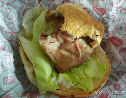 第二次订了两个堡,这会货对版了。 一个是熏烤嫩鸡堡,嫩鸡确实嫩, 但是,整体形象不如图片显示得好吃, 关键是配菜的问题吧? 多放几片生菜叶,加片大大的西红柿, 想必加分不少,口味也能提高一个档次。 另一个是法式薯香蛋堡, 没去过法国,却听说过法国美食, 这个嘛,除了沙拉酱,其他都没有味道, 需要改进的地方实在不少, 起码那些“薯”调一调味也好嘛。 就此搁笔。