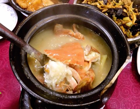 ✨大中午过来,简直包场的感觉、自己也觉得很尬,还是应该宵夜更搭 ✨环境旧旧的,倒是有广东茶楼的亲切年代感,破瓦煲里面的虾蟹粥果然美味、一只肥蟹一斤鲜虾的精华都被锁在瓦罐之中,比小城粥道家更感纯味鲜...