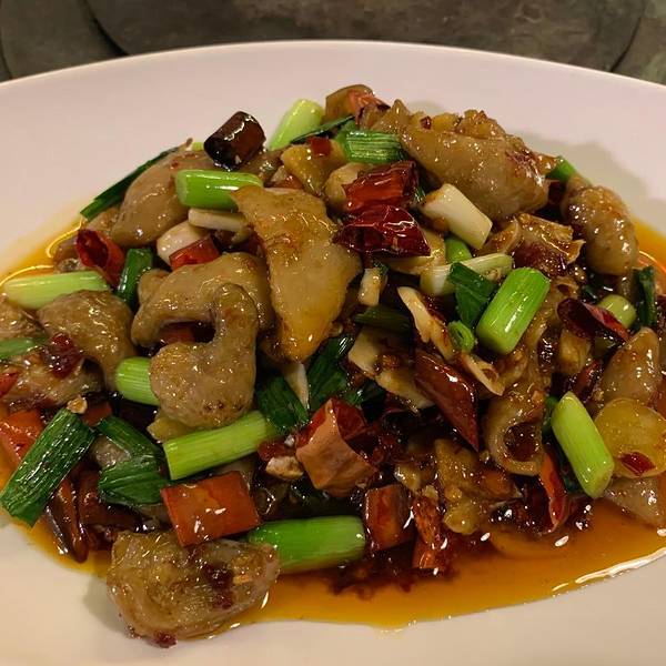 位于贵阳宝山北路上酒店批发市场内的一家老字号菜馆,门口的坝子可以停放20多辆车,5元/小时。 开了很多年的店,吃饭的几乎都是本地人,下午需要排队,主打贵阳口味的黔菜,环境一般般,收银台地面比较滑。 炝锅鱼:口味非常不错,筒筒辣椒炸得很到位,可以直接入口,嚼起来嘎嘣脆,最好吃的部分是鱼皮,最入味最进油盐。 宫保肥肠:这道菜也是黔菜的代表菜之一,经典名菜。这家菜馆做的甜辣味正好,火候的把控也很好。肥肠新鲜,洗得干净,并且软糯到位。最好吃的是汤汁,用来拌饭吃简直不要太舒服。 腊肉炒蕨粑:这道菜也是本地特色菜肴,总体很不错,本地出产的蕨粑香糯入味,蒜苗炒制的火候把控得不错,香味能很好地融入到菜中。