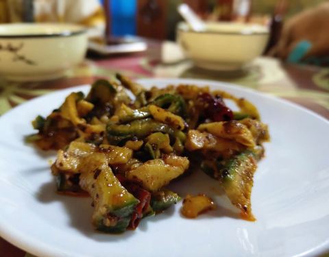 点的大份排骨,店员推荐的炒青菜里还有排骨,我们脸上写着缺肉两个字吗 2016-10-08 08:05来自携程 网友