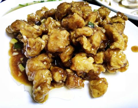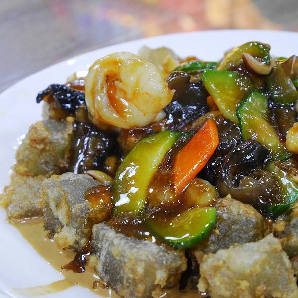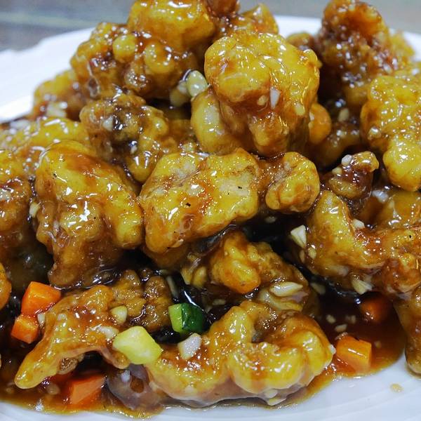 焖子是一道著名的大连小吃,不过饭店里把这菜改良了一下。小吃摊位上的焖子是用油煎的土豆粉,饭店里是炸成脆皮的这种,麻酱,蒜汁,老醋一个都不能少,最特别的是加了好多海鲜,这个菜只有在餐厅里才可以点到,可以当做主食吃。这家的焖子,海鲜不算太多,味道还好,吃久了容易腻。特写,配料也比较丰富。软炸蛎蝗