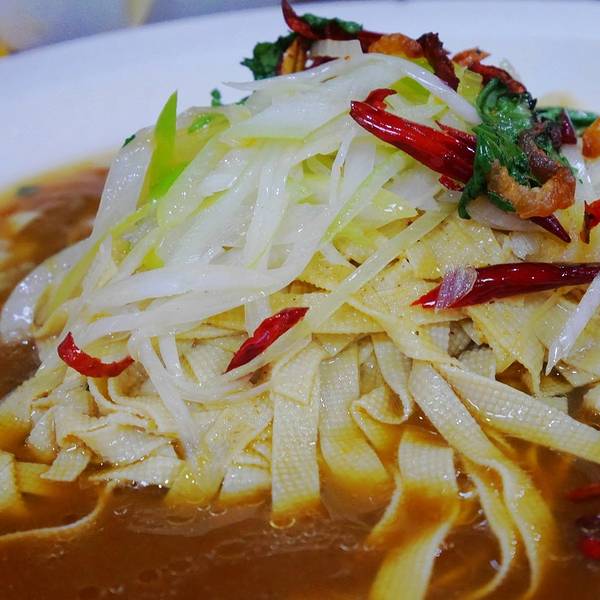 招牌的葱油系列强烈推荐,点了一个葱油豆皮,本来没报太大期待,口味却让我有些惊艳。葱油味道很浓郁,还加了某些有些鲜味的汤汁,豆皮不是我们常吃的油豆皮,是干豆腐皮切成丝。不咸不淡刚好,关键是这葱油实在让人有些回味,葱油系列可选。还有金钩海米,大连菜的海鲜比例还是比较大。