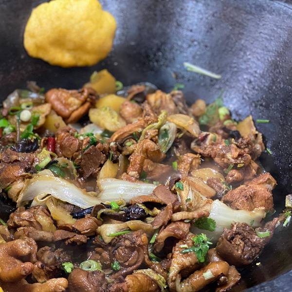 泡温泉也是会累的,尤其像我这种泡水10分钟,拍照2小时的。 6点我就累得想回去了。 昨天吃的铁锅炖不太开心,今天要吃点普通的。 点了一个团购,感觉就是平时吃的那种焖锅。 emm,也许是被腻到了。也许是太累了。 吃了点我就吃不下了。