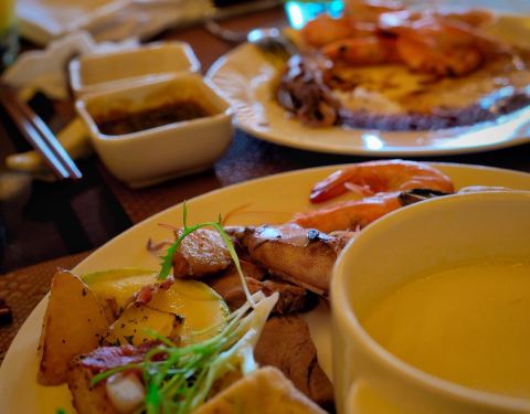 这是一家主营自助餐的餐厅。这儿做的菜味道都非常的棒,而且菜式也是非常的丰富。店内装潢的还不错,虽然面…
