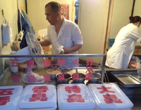 临时铁皮房子,老板夫妇都穿戴整洁,锅里的油看起来也清透,好多学生来光顾,一共4种口味,清臭大臭五香特臭,一样来一个尝尝,五香的能算有些特色吧,脆皮的,其他的和别人家都一样呀,只是卫生情况让人比较放心...