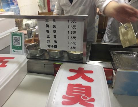好多学生来光顾,一共4种口味,清臭大臭五香特臭,一样来一个尝尝,五香的能算有些特色吧,脆皮的,...