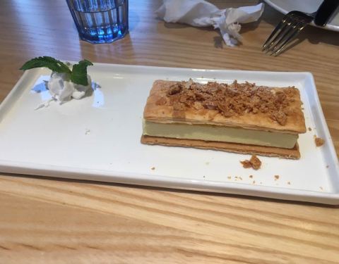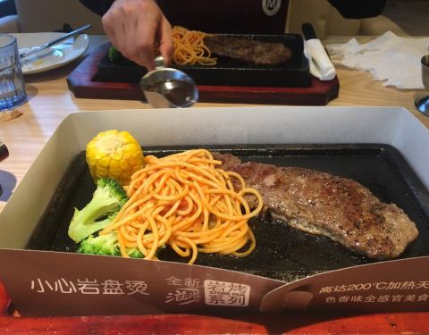 团购了5份牛排券240大洋,小食稍显油腻,鳕鱼薯条忘拍了,还是不错的,拿破仑蛋糕很好吃。牛排肉质不错,孩子喜欢