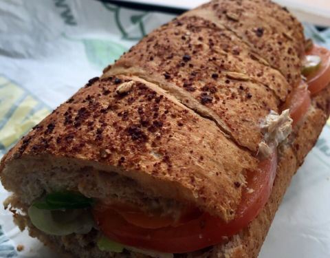 他家每日特价的三明治还是相当给力的,我一般会周二去,因为周二是我喜欢的金枪鱼三明治特价^_^,特价只要15块钱,一个内容丰富的三明治足够吃的又饱又好! 一般都是去罗斯福的店,今天正好路过这里,正好周二,正好进来买一个金枪鱼三明治当午饭,店里座位不少呢,座位之间又很宽敞,吃饭的人也不是很多,喜欢这里的地砖和风扇,还有无线网络,吃饱了,蹭会儿网再走哈哈^_^
