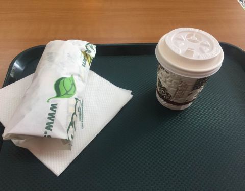 - 一般都是去罗斯福的店,今天正好路过这里,正好周二,正好进来买一个金枪鱼三明治当午饭,店里座位不少呢