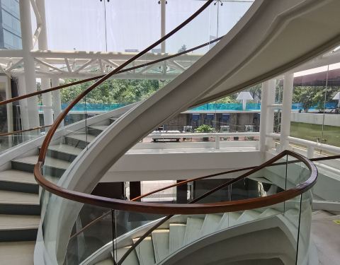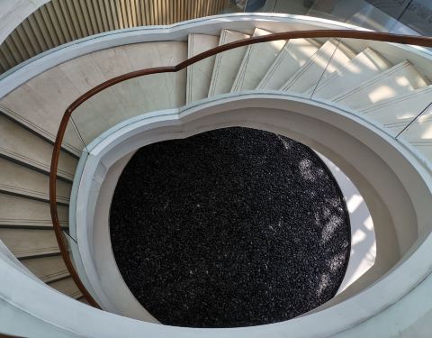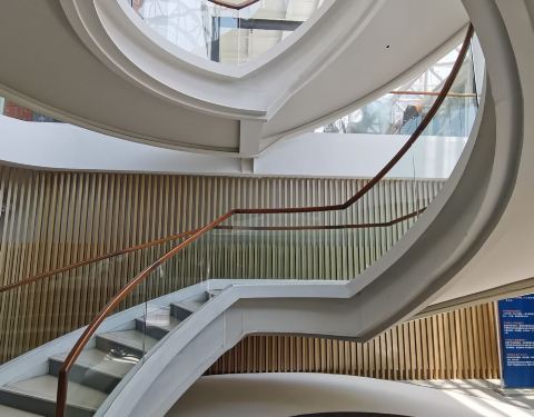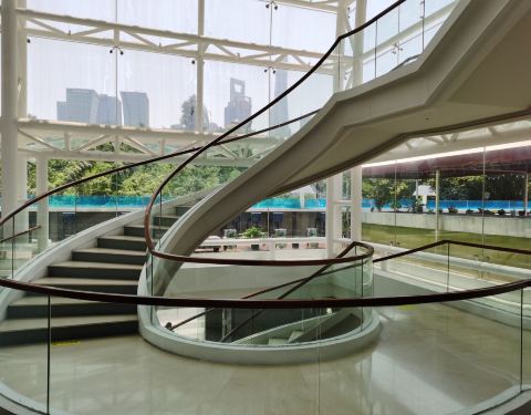 北外滩的一个好去处——抱朴美术馆 。美术馆位于虹口北外滩,临近国际邮轮中心,交通也很便利,12线提篮桥站下,步行可到达。远远就可以看到美术馆的玻璃顶棚,构造有点伦敦玩过博览会水晶宫的意思。目前进去美术馆不需要预约,只要出示随申码,并填写个人资料即可,不过貌似会限制人数。抱朴美术馆 最有名的肯定是旋转楼梯,黑白混搭的色彩,环形的曲线,再加上背后外滩的风景,都让它成为绝佳的取景地。当然美术馆中的藏品也都很值得一看,尤其是各种钧瓷更是堪称佳品,来拍照的各位,千万别错过。