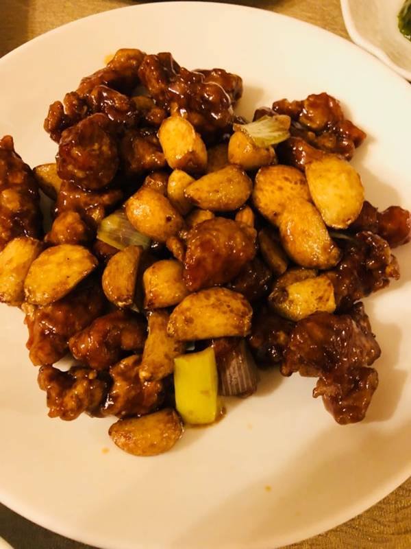 土豆泥是赠品,但是真的炒鸡好吃!在五大道的一个小院里,叫华竹食府 花生糊一份很多,一个人吃不了