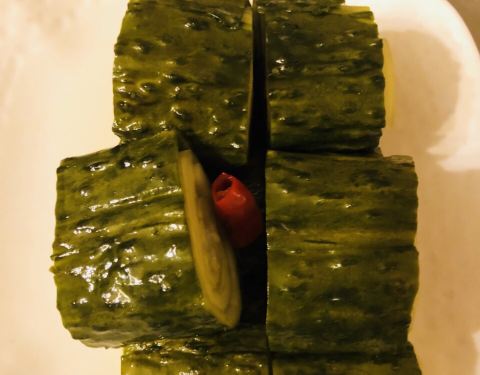 幽蓝撒下草籽,我栽培并拔之。 [环境] 店面是个老洋房,年久失修自带沧桑,桌椅壁纸有模有样,瓶中的小花竞相开放~ 「沙拉」 谁说津菜不能有沙拉,名字是什么不重要吧,本质还是国菜鸭。 「香滑花生糊」 全场最佳,要是一开始先喝这个可就好了。 「葱烧排骨」 我可实话实说了啊,您家这排骨欠火候。 「金蒜子牛肉粒」 还不错,卡路里爆棚! 「芥末黄瓜卷」 太爽口了呢! 「乌鱼蛋汤」 平均水准之上,还不错。 [服务] 老板倒是热情招呼,服务小伙子就有点儿吊儿郎当了,而且坐姿霸气外露,时不时还往人家餐桌上撇两眼,当剑蝶应该是两把好手。