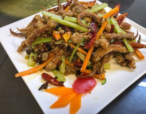 “干煸鱿鱼须”天津卫真的是做这道菜最好吃的城市了,外酥里嫩的鱿鱼须,爽口的芹菜,麻辣鲜香