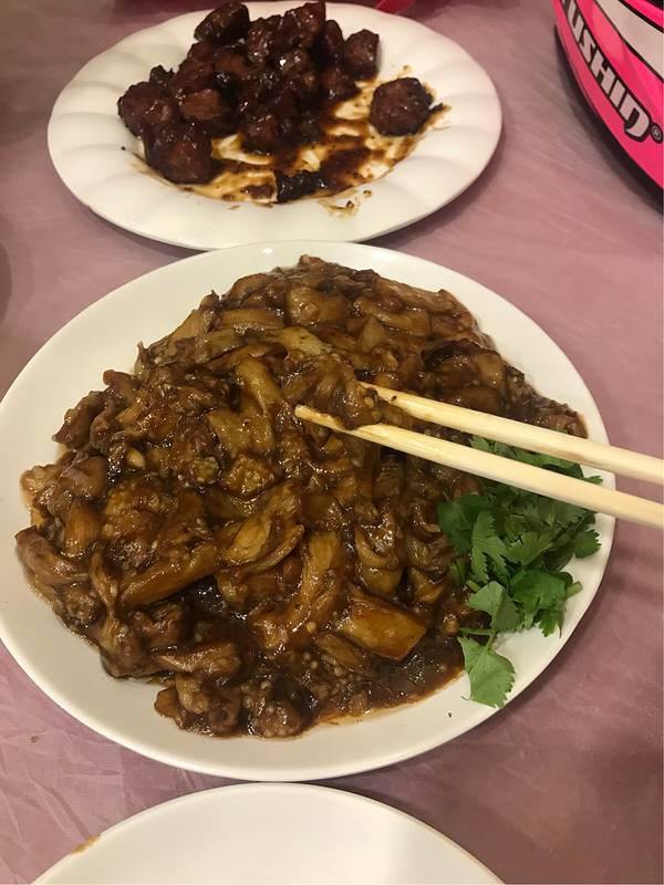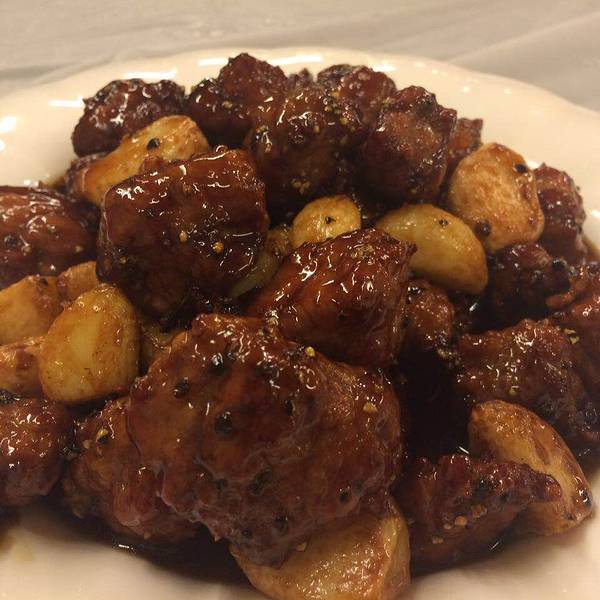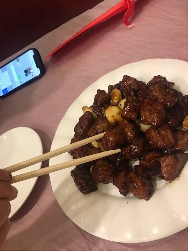 - 牛肉黑椒味道,非常嫩,配上大蒜超级搭哈哈哈哈。香酥鸡也很好吃,椒盐的,鸡肉外酥里嫩