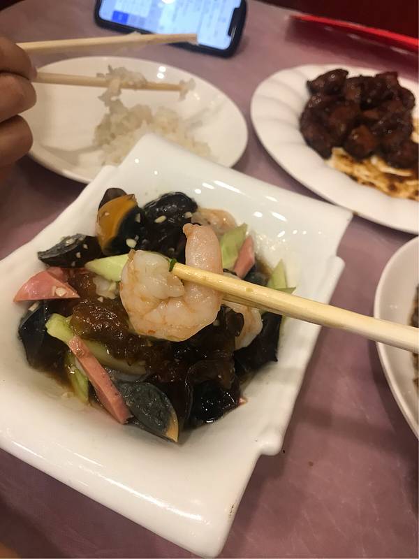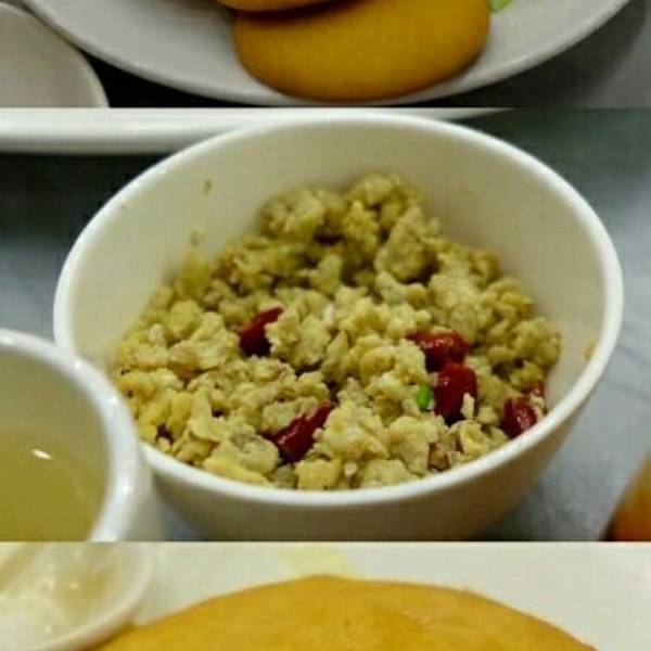 虾酱有点咸了,但是配上没有什么味道的玉米面饽饽还不错。