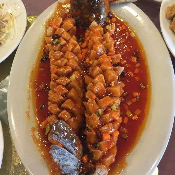 鱼炸的不是非常酥脆,但是糖醋汁味道很棒不会太甜太腻。