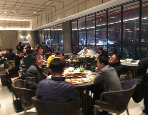 ...友介绍的餐厅,来到重庆的第一次麻辣火锅,全店坐满人,美食以外,美丽的长江夜景更让重庆火锅更美味
