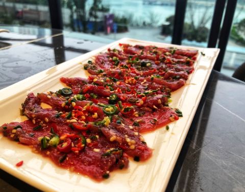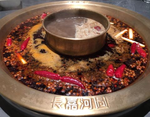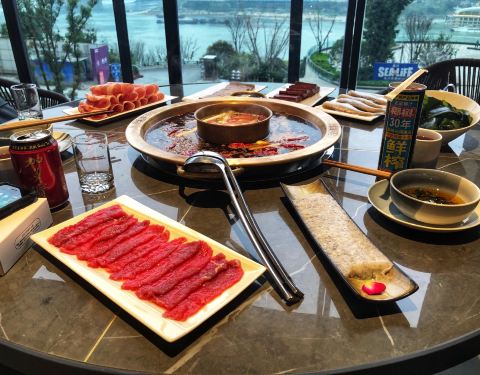 长嘉河图火锅是外派在当地工作的朋友介绍的餐厅,来到重庆的第一次麻辣火锅,全店坐满人,美食以外,美丽的长江夜景更让重庆火锅更美味。
