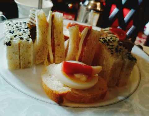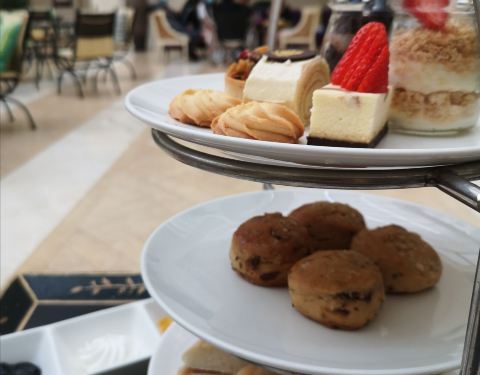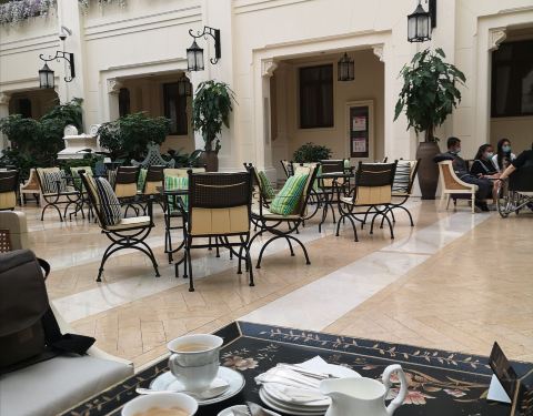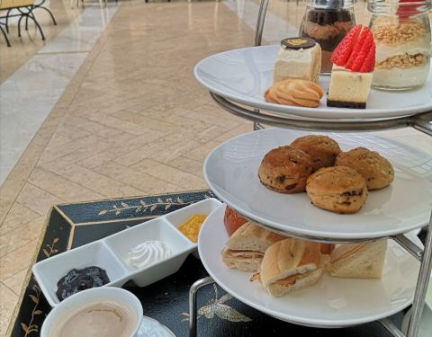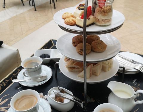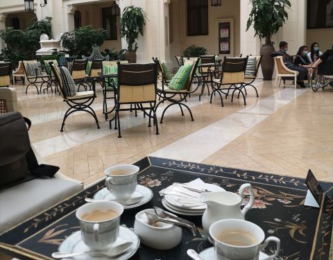 利顺德大饭店,维多利亚花园的下午茶。首先环境很赞。玻璃顶采光好,不像那些光线昏暗的咖啡馆,里面绿植丰富,有阳光的味道。座位间距很大,不必担心私密性。坐在这里能迅速放松下来。 另外味道也不错。双人套餐量足,饮品可以选咖啡、果汁或茶。甜点做的挺好。 因疫情期间对人员密度的要求,需要提前预约的。