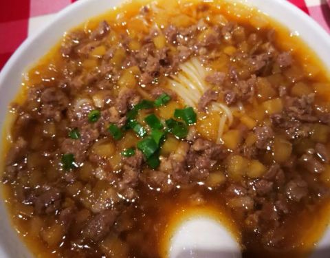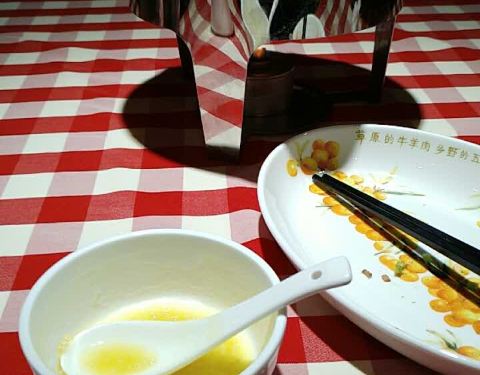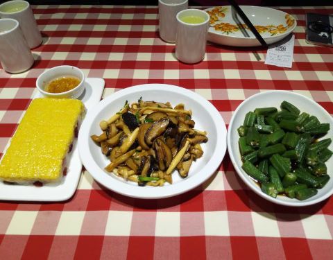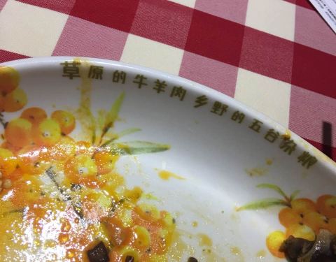 莜面蒸饺好吃,韭菜虾仁鸡蛋馅。黄米凉糕每次来必点,吃起来凉丝丝糯糯的,沾着糖好吃!葱油秋葵健康食品。猪肉烩豆腐,这个菜都是肉末烩豆腐,没看见肉片!跟图片不符!橄榄油三种蘑菇,爱吃蘑菇的来可以点。还有个羊蝎子,没拍图,味道不错,没有腥膳味,我比较爱啃骨头,这个菜没啥肉,有给的白菜,金针菇,土豆粉。可以自己下着吃。