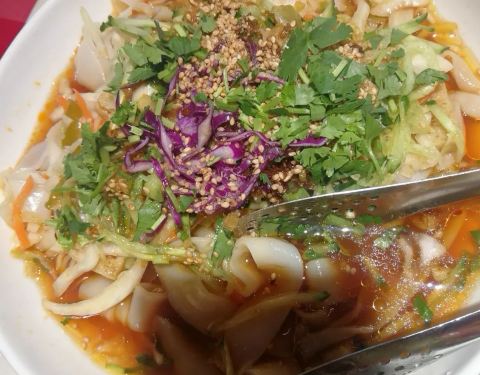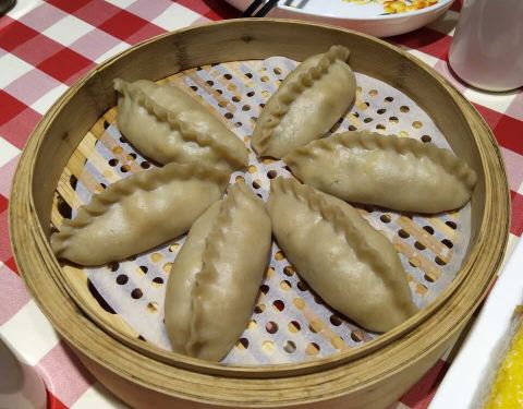 - 莜面蒸饺好吃,韭菜虾仁鸡蛋馅。黄米凉糕每次来必点,吃起来凉丝丝糯糯的,沾着糖好吃!葱油秋葵健康食品