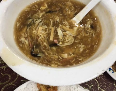 推荐她家的西葫羊肉锅贴!量大 味好!炸河虾、酸辣汤打70分,也许客人外卖多 影响了品质!
