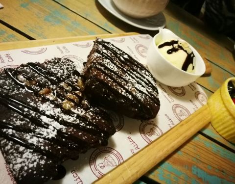 这家店在我的备忘录里已经好久好久了!!!他们家的咖啡☕️我真的很爱!!!爱丽丝梦境要点喔~无花果脆和奶油冰淇淋的点缀 一整个爱住!!下午来上一杯就惬意和舒适 点了个黑巧流心巴斯克 真的蛮不错的 浓浓黑巧...