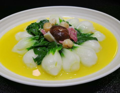 这家餐厅以金陵十二钗为主题,创作出各具特色的菜品,摆盘精致,件件都是一个艺术品。餐巾纸上面印的很精美的图案,舍不得用呢!餐前水果是放在一个精致的首饰盒里的,好想把它带回家!作为南京人最爱的鸭子,这里也可以吃到,盐水鸭做的很正宗。黄色的厚厚的盐里藏着盐水鸭,独特的造型吸引了我,想要吃着鸭子就得把盐包敲碎,只好忍痛敲碎。金陵不缺美女,来一碗燕窝,南瓜里满满的燕窝,入口即化,吃完美美的。听说这家的醉蟹相当有名,有专门的厨师做这道菜。一定要尝试,物超所值!吃了那么多家菜这家的菜心最让我难忘,菜名忘了,里面还有海鲜,非常鲜美,一盘根本不够吃,很好吃就对了!作为一家特色餐厅,我觉得吃的是一种情境,宴请宾客首选!